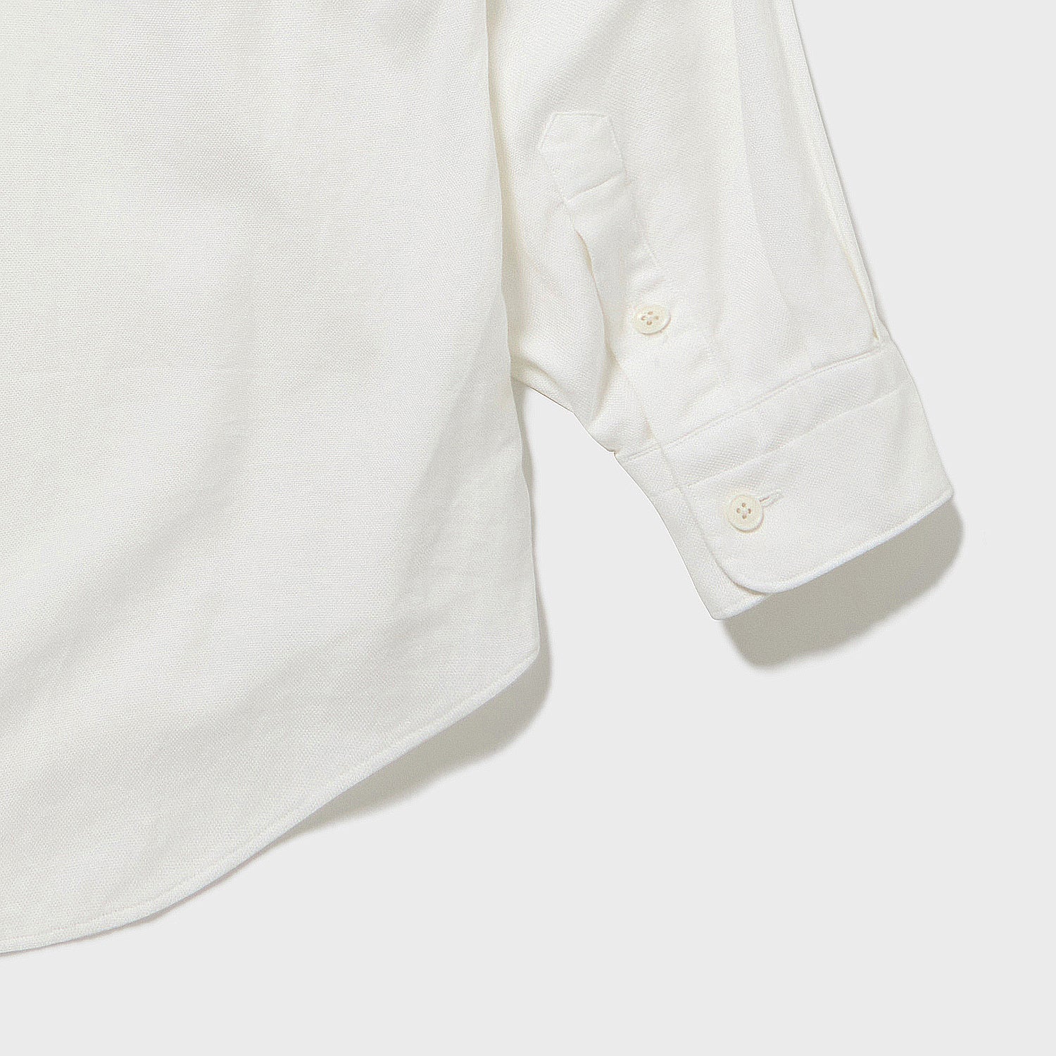 通常、ヨコ糸には太番手の糸を使う事の多いオックスフォード生地ですが今回は中細番手の双糸を2本引きそろえて打ち込むことで、ざっくりした目風を出しながら組織の中で各々の糸が自由に動くようにすることで生地に柔らかさが出るようにしています。仕上げにはピーチ起毛を施し、海島綿の持つしっとりとした究極の質感を存分に味わえるように仕上げました。
