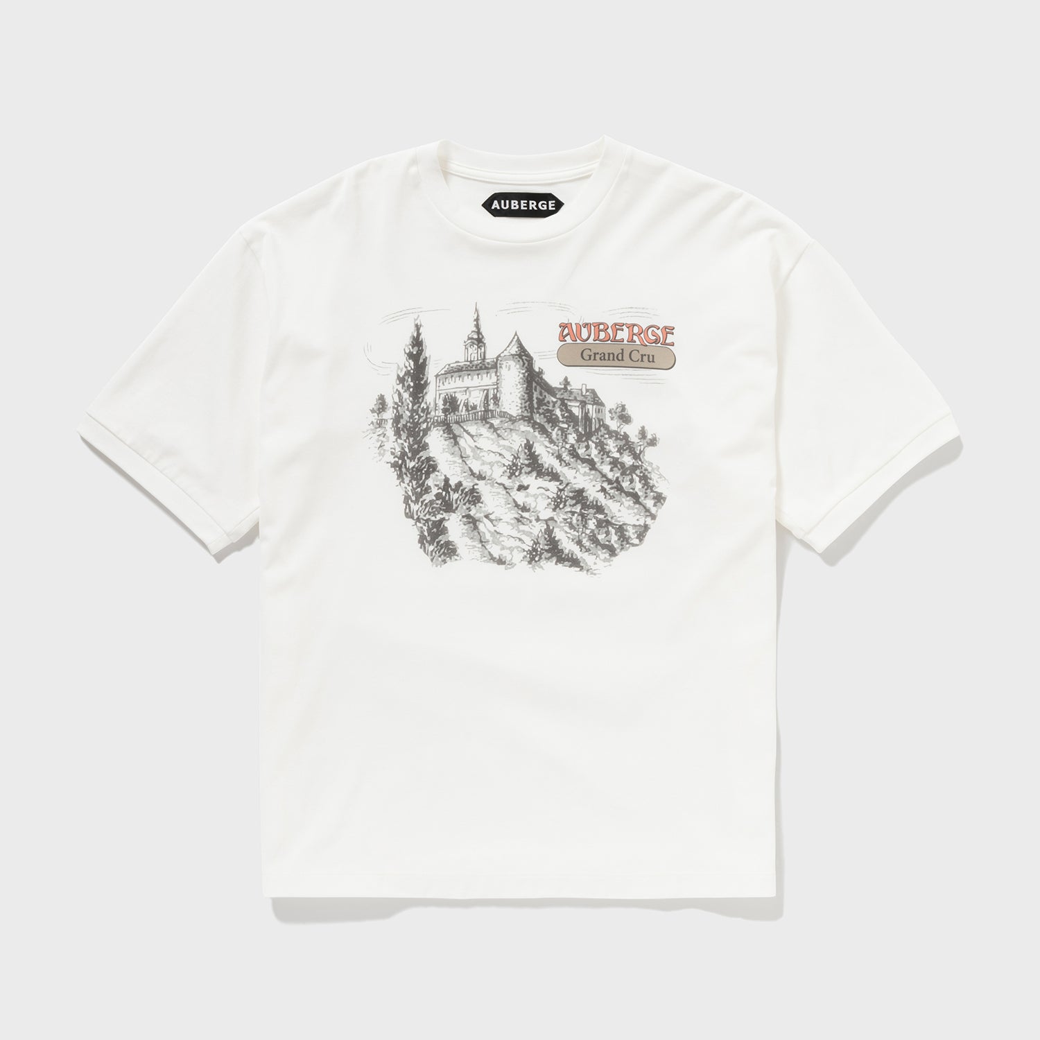 胸元にフランスの田舎の葡萄棚をイメージしたイラストを描きました。GRANDO CRUクリュとは最高の畑の意味です。