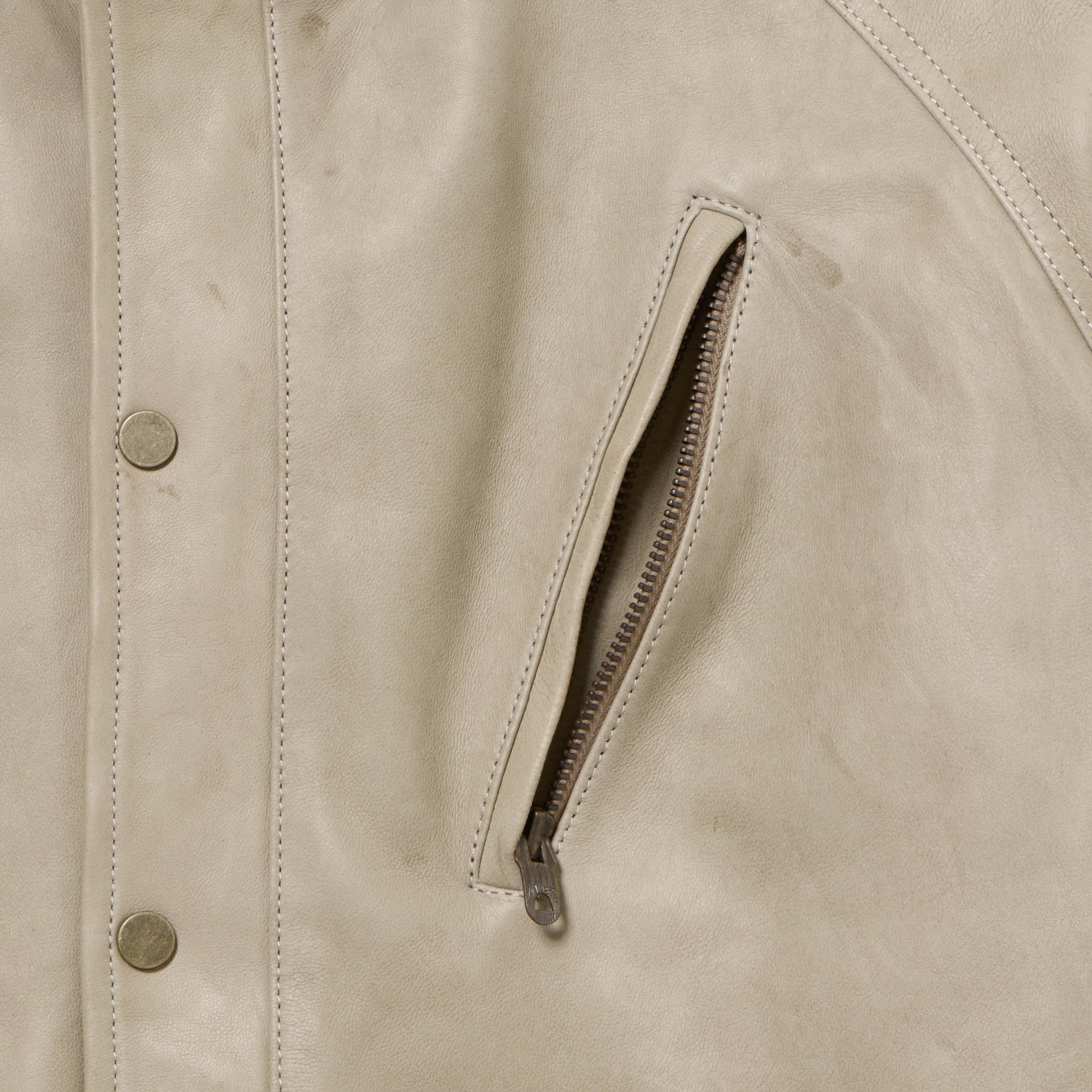 糸形状に関して、DENIM FAMILYが生産されていた1950年代当時の紡績機によるムラ形状を忠実に再現する為に幾度と試紡を重ねた完全別注糸の7/-をタテ糸に、14/-をヨコ糸に使用しています。縦糸の染色に関して混ぜ物をしていないピュアインディゴ100%の合成染料をロープ染色機で当時同様に淡色且つ青味の強い色目を再現しています。ヨコ糸に関して、20世紀初頭のライトオンスデニムは緯糸にTOP糸(綿の段階でグレー味の色を作り織り糸にする)を使うのが通例ですが、50年代のLEVISでは緯糸を電子顕微鏡で見てもかなり均一に染まっていたのでTOPでは無かった可能性も高いという判断からスレン染料でグレーに糸染めしております織りに関して旧式力織機を使用してDENIM FAMILYを解析した経緯の密度本数と2/1の織り組織でしっかりと織り上げました。