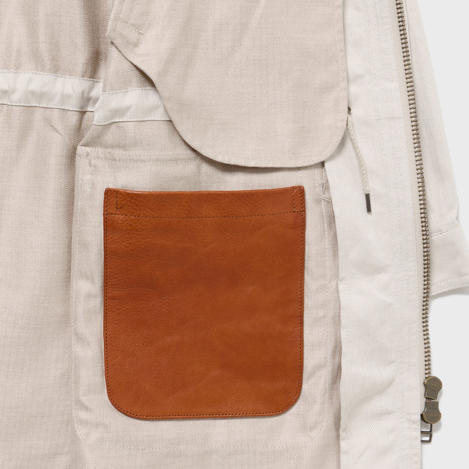 上衿には、イタリア・トスカーナ産のベジタブルタンニン鞣し牛革を使用しています。